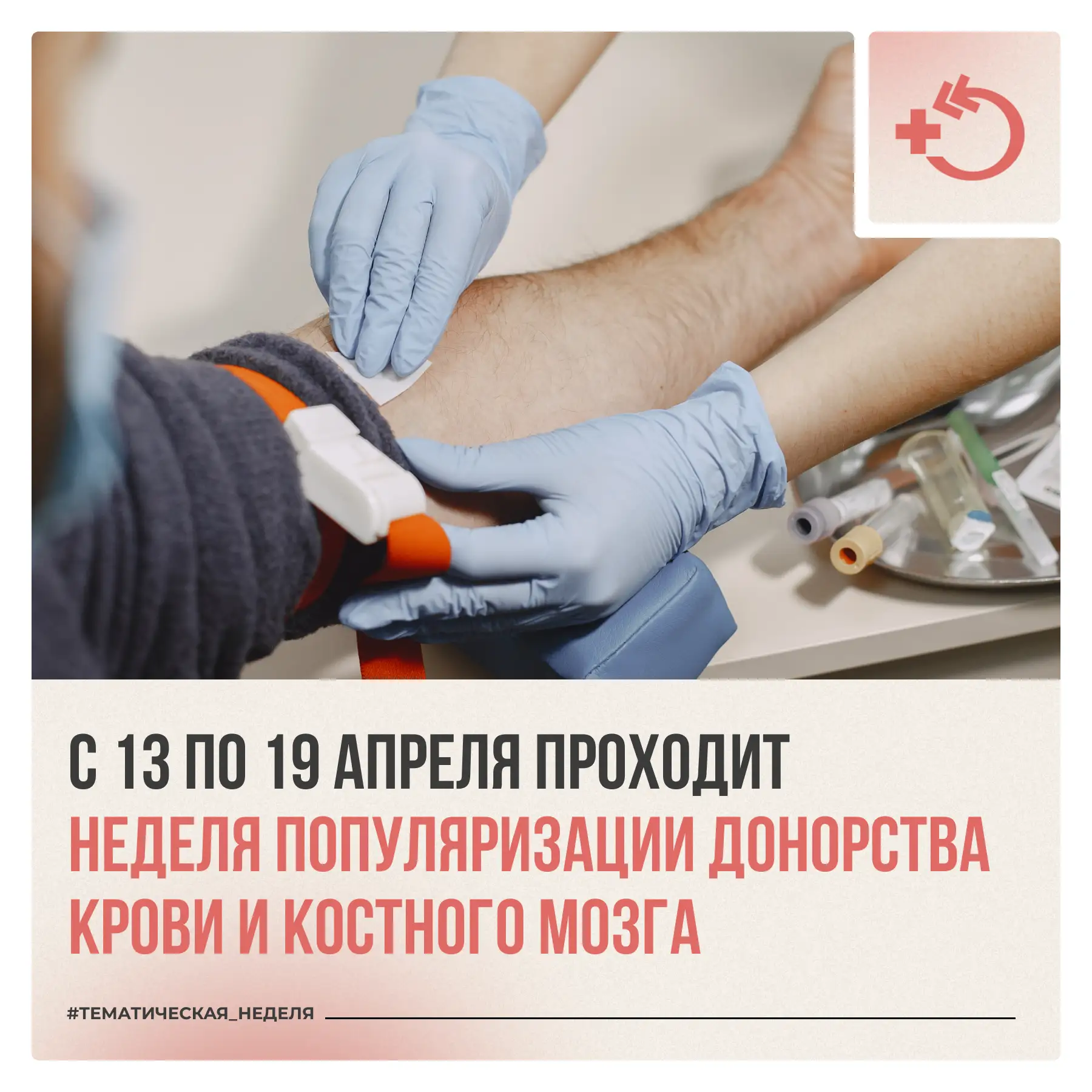 С 13 по 19 апреля в России проходит Неделя популяризации донорства крови и костного мозга. Она приурочена ко Дню донора в России, который отмечается 20 апреля.