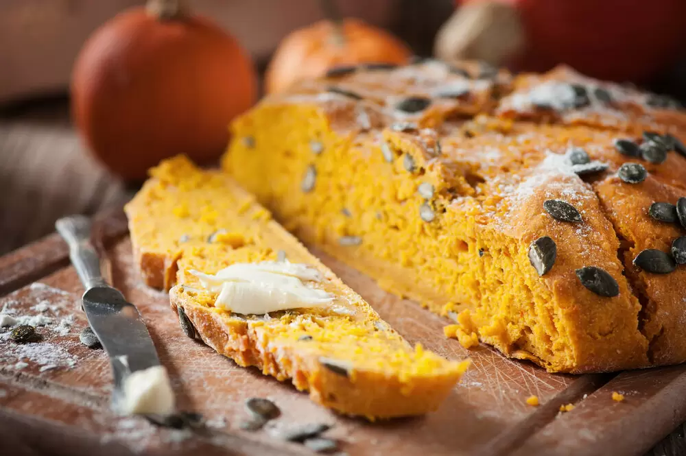 - Ароматный тыквенный хлеб — быстрое, но эффективное решение. Получается сытным, можно добавлять специи или орехи по вкусу.