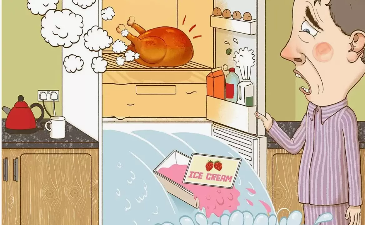 Когда горячие блюда попадают в этот замкнутый круг, компрессор должен справляться с резким увеличением температуры. Это можно представить как попытку охладить комнату, в которой открыта дверь печи: нагрузка на систему возрастает многократно.