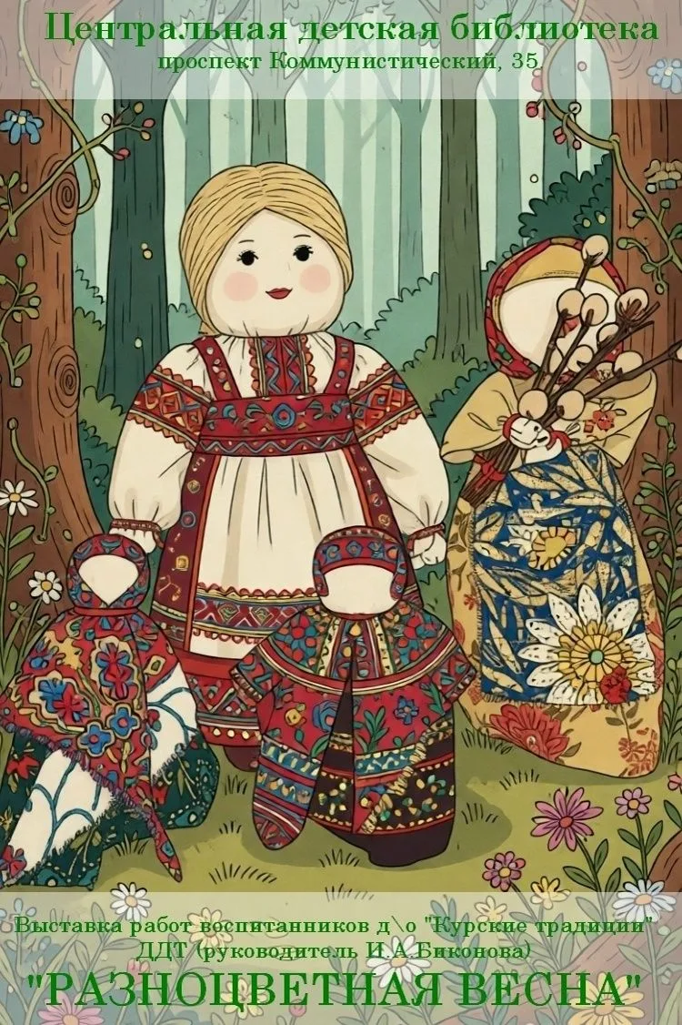 В Центральной детской библиотеке появился настоящий островок весеннего творчества и народных традиций. Воспитанницы детского отделения «Курские традиции» Дома детского творчества Рыжих Евгения и Герасимова Виктория под чутким руководством Ирины Анатольевны Биконовой подготовили удивительных кукол из ткани.