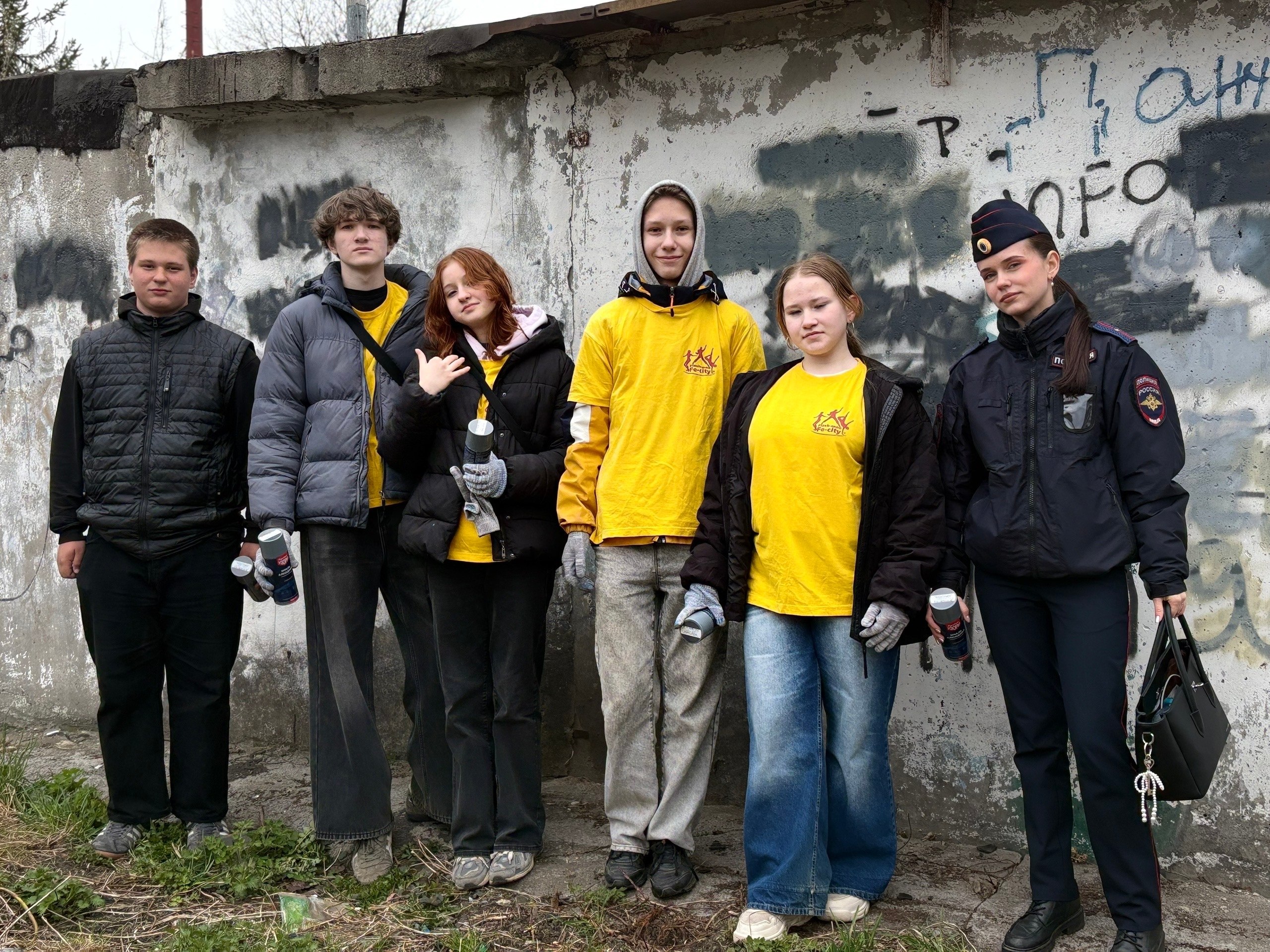 Волонтёры Центра молодёжи вместе с сотрудниками полиции провели акцию «Чистые стены».