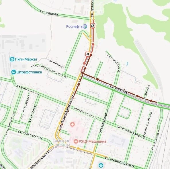 В районе пересечения улиц Дубровинского, Гудкова и Фрунзе произошло ДТП. Движение личного и общественного транспорта (в частности, автобусов маршрута № 88г) сильно затруднено.