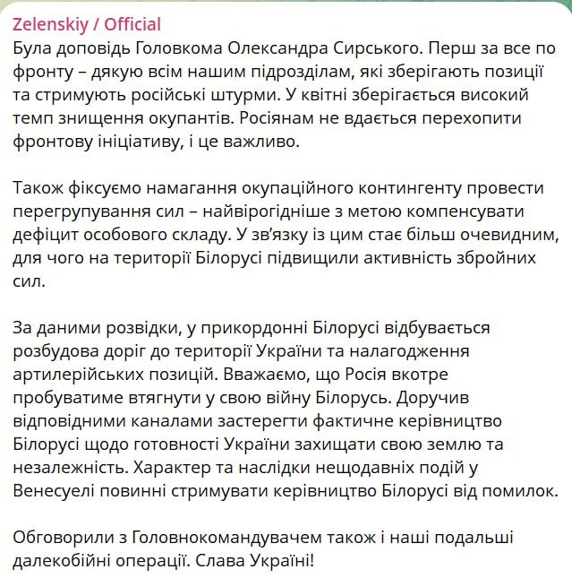 Зелебобус снова намеренно нагнетает ситуацию в отношении Белоруссии. Говорит, на белорусско-упраинской границе москали строят дороги на Украину и оборудуют артиллерийские позиции. Дескать, снова с севера наступление будет.