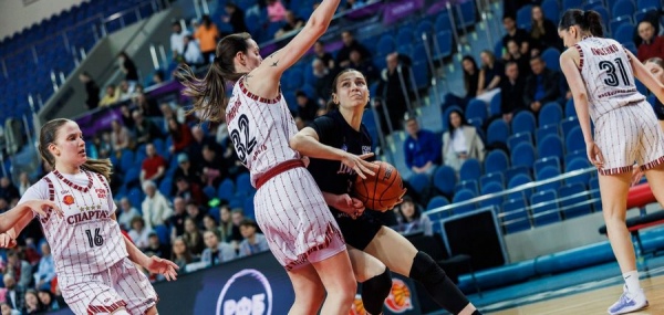 Спартанки, благодаря дуэту Полины Селезеневой и Карины Комаровой, восстановили равенство. К большому перерыву была ничья – 40:40.