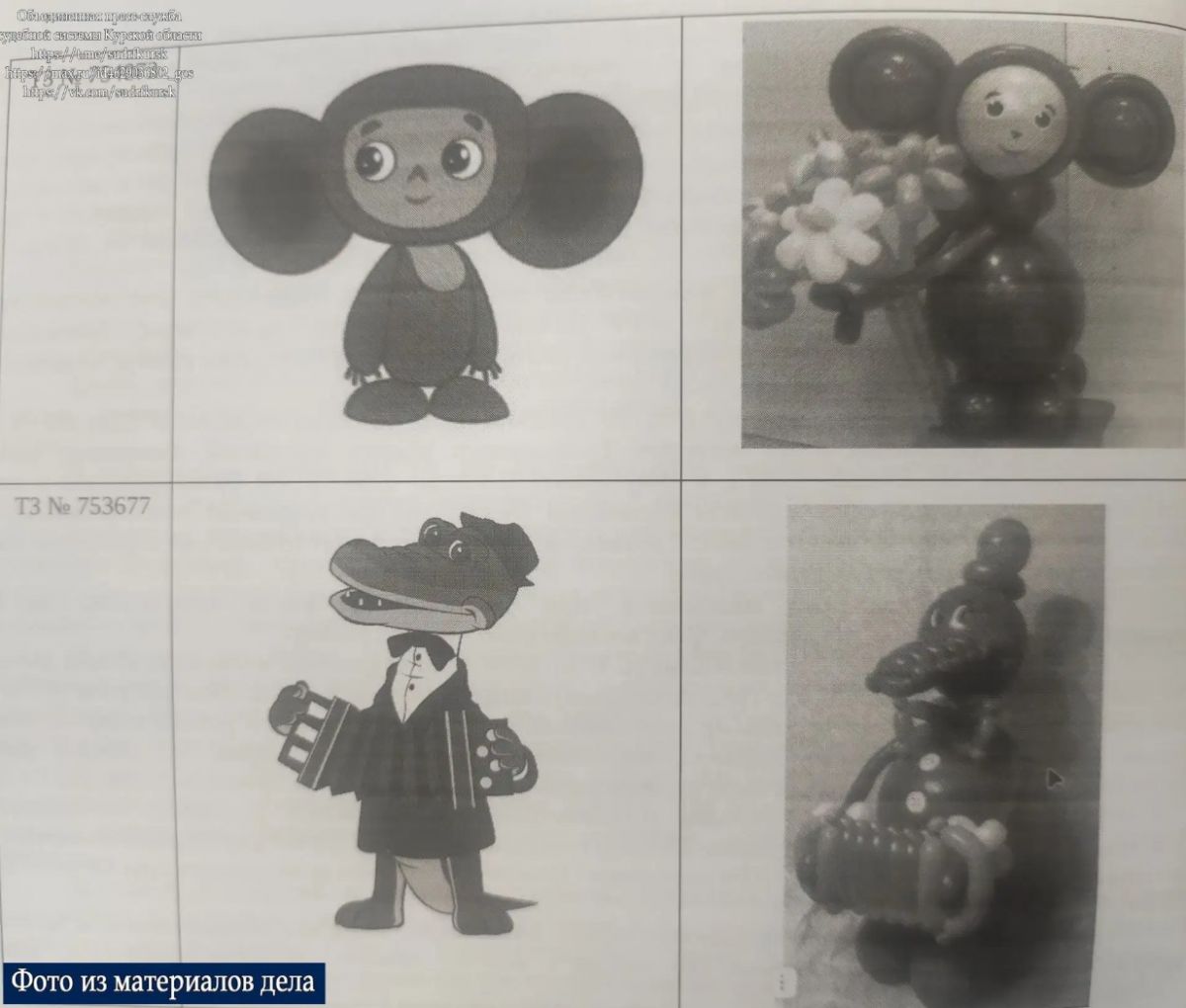 Мультипликационная компания указала, что она является обладателем прав использования персонажей «Чебурашка» и «Крокодил Гена». Продажа воздушных шаров в форме персонажей, схожих с оригинальными образами, без заключения договора нарушает исключительные права.