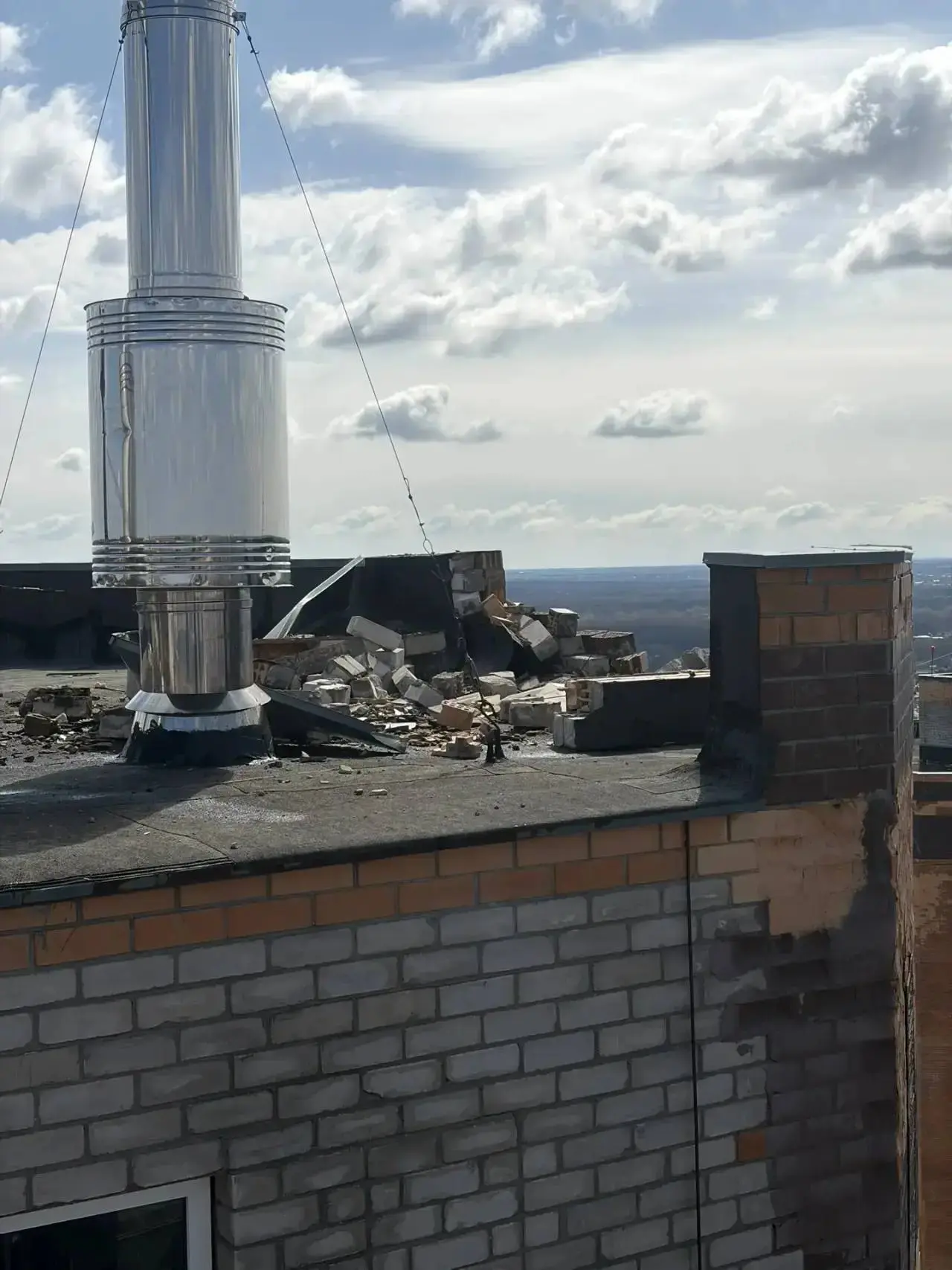 Ночью вражеский беспилотник врезался в крышу многоквартирного дома, обломки повредили кровлю котельной. Жильцов верхних этажей оперативно эвакуировали.