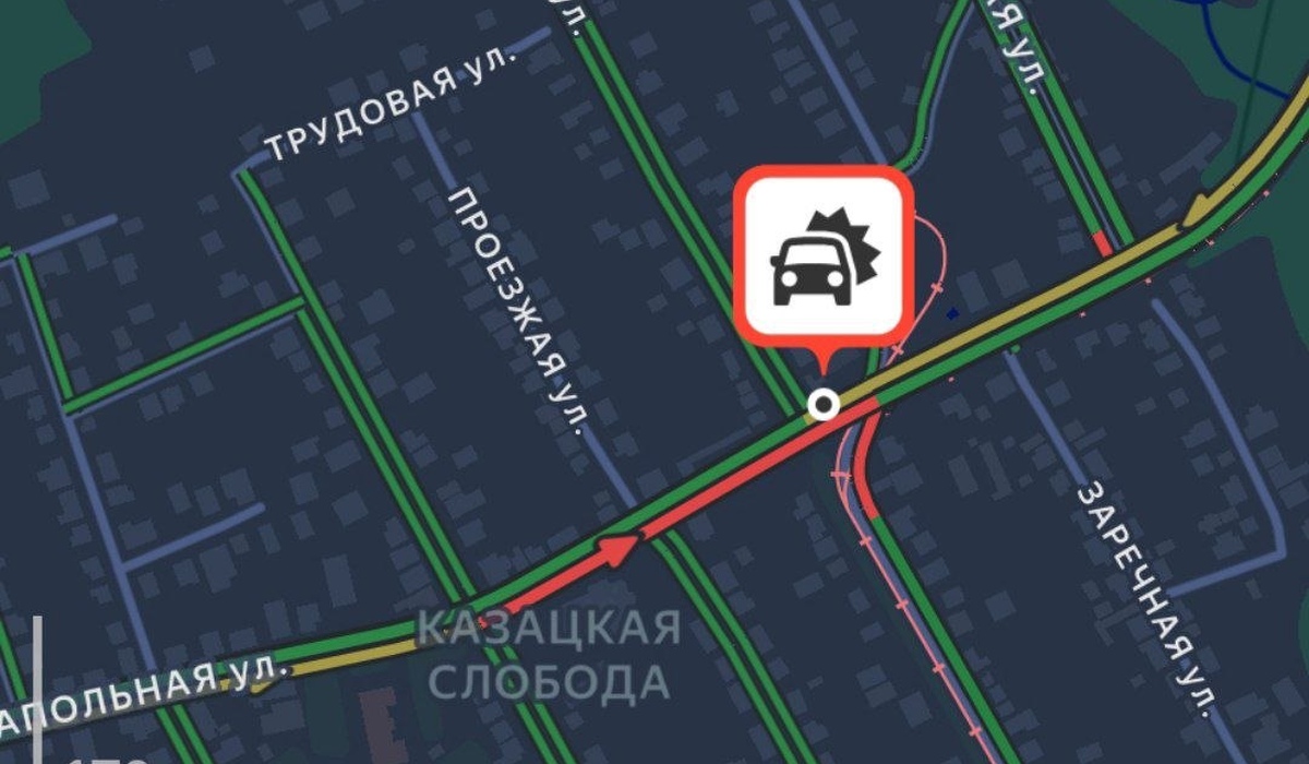 Авария создала помехи для движения личного и общественного транспорта по Запольной улице в сторону улицы Карла Маркса.