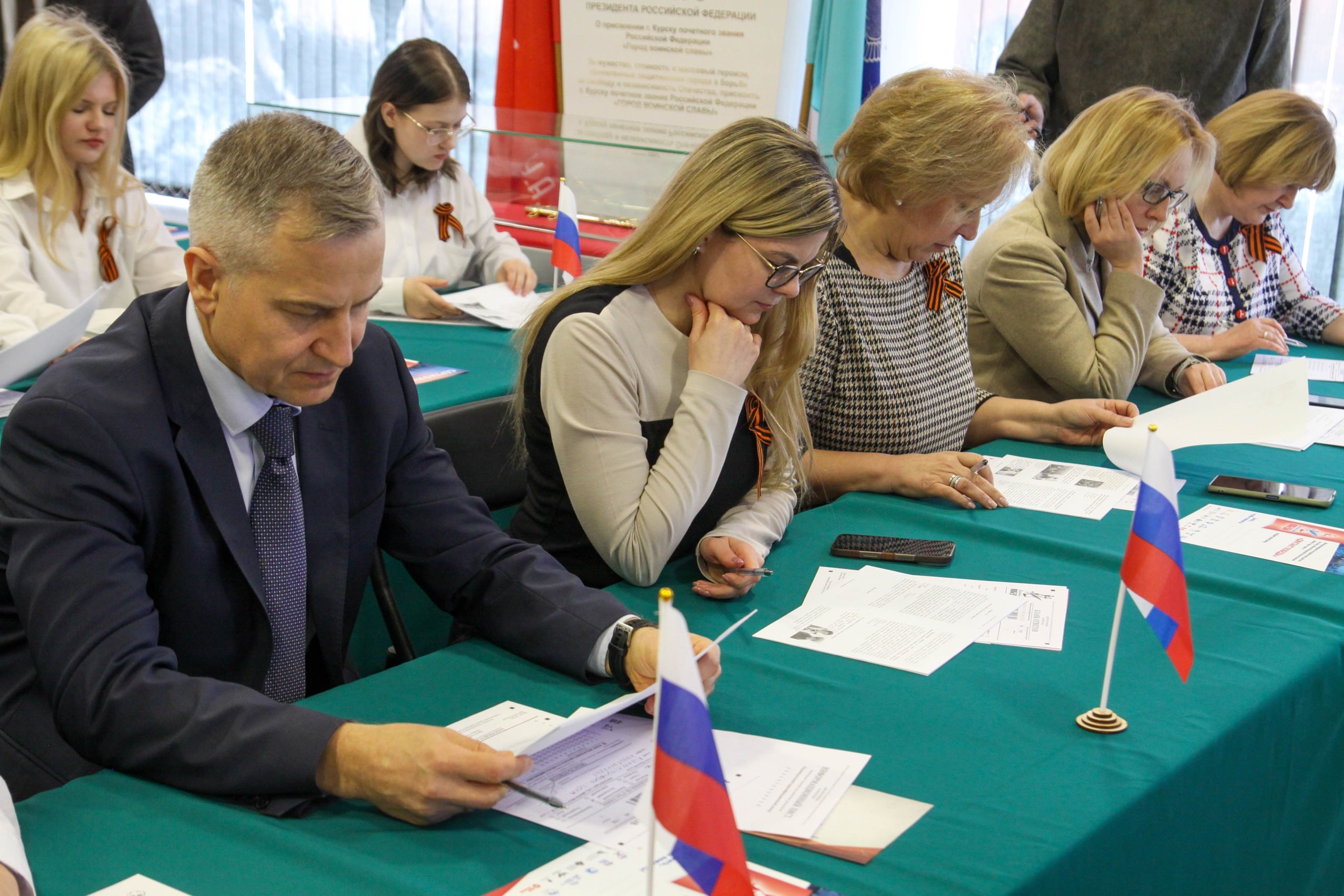 В областном центре международная историческая акция «Диктант Победы» прошла на площадках университетов, школ, учреждений культуры, музеев. В выставочном центре «Курск – город воинской славы» к ней присоединились первый заместитель губернатора – председатель Правительства Курской области Александр Чепик, заместители губернатора Оксана Крутько и Виктория Лукашова. Перед началом диктанта все участники подготовили письма с пожеланиями бойцам СВО.