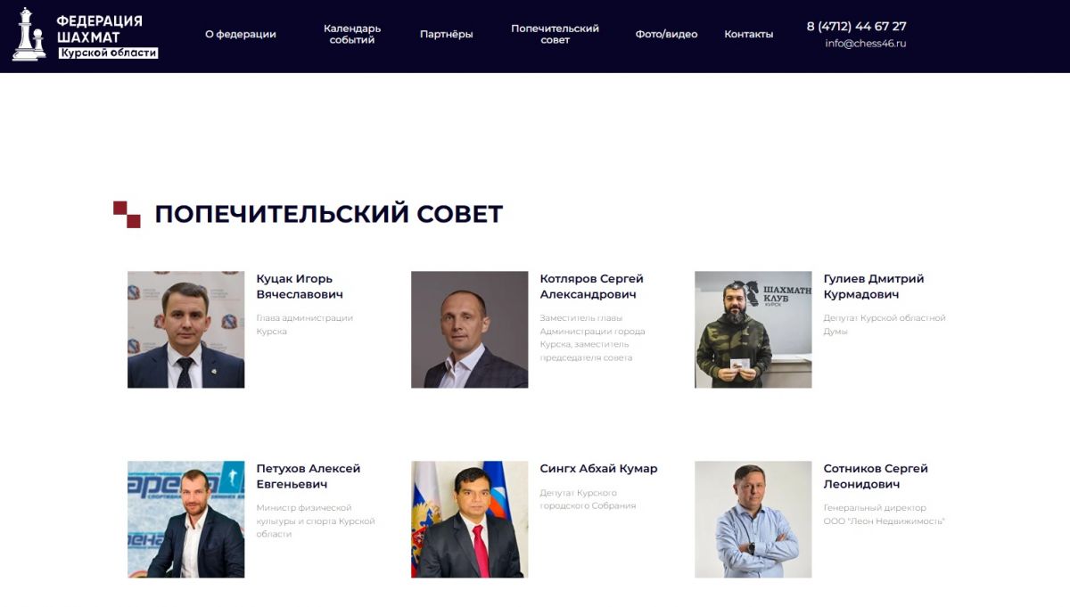 Согласно информации на chess46.ru, попечительский совет возглавляет «глава администрации Курска» Игорь Куцак, вторым лицом указан его зам Сергей Котляров. В реальности Куцак подал в отставку 7 апреля 2025 года и ушёл с поста 10 апреля.