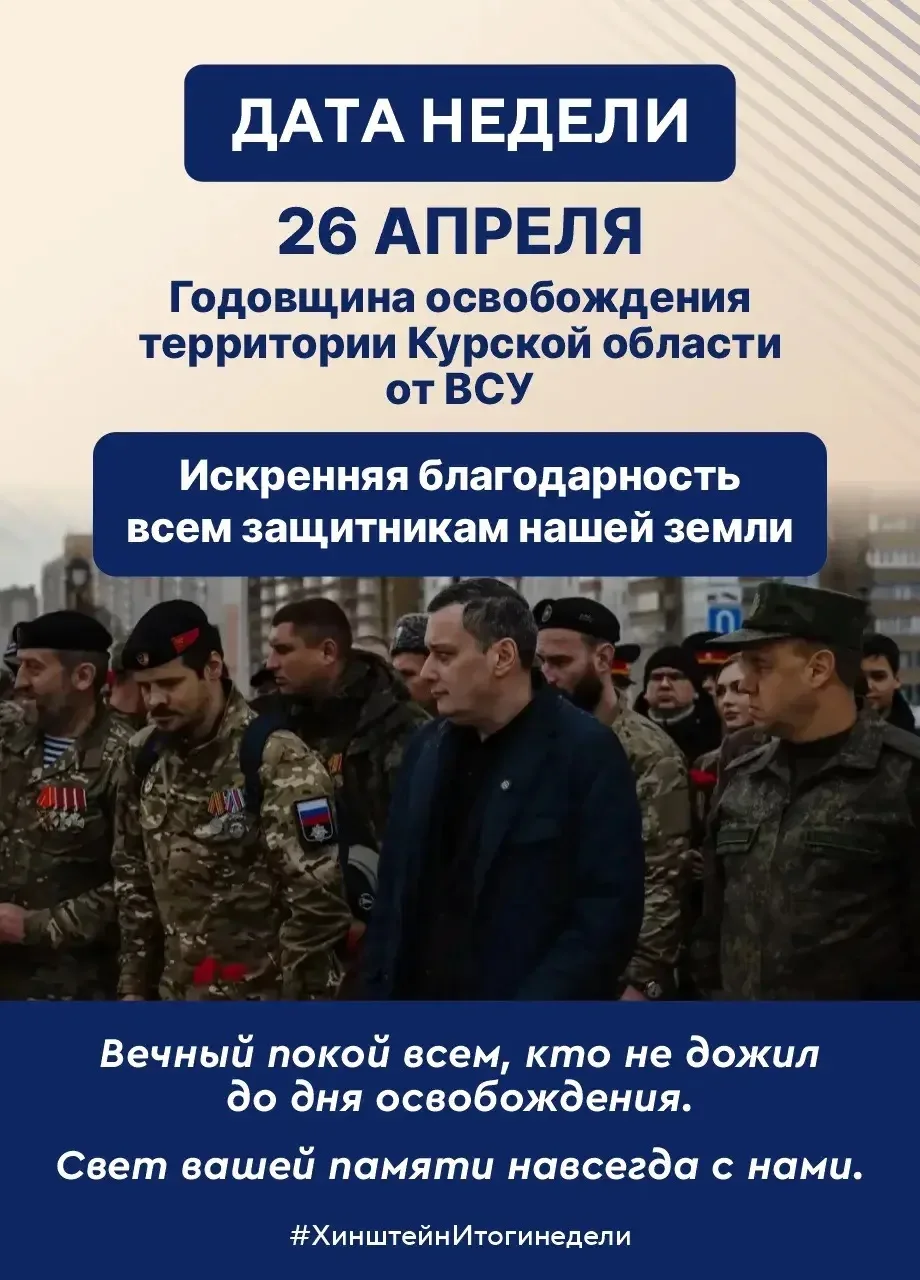 Чем ещё запомнились последние семь дней — смотрите в карточках. Ещё раз поздравляю с Днём победы Курской области и желаю мирного вечера.