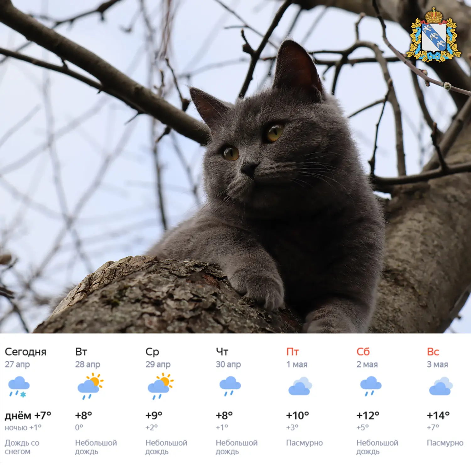 27 апреля, понедельник Неделя началась снегом с дождм. По прогнозу, сегодня облачно с прояснениями. Столбики термометра поднимутся максимум до +7°C.Интересно, погода вообще выйдет на нормативы для отключения батарей? Пока что они горячие. Послушаем...