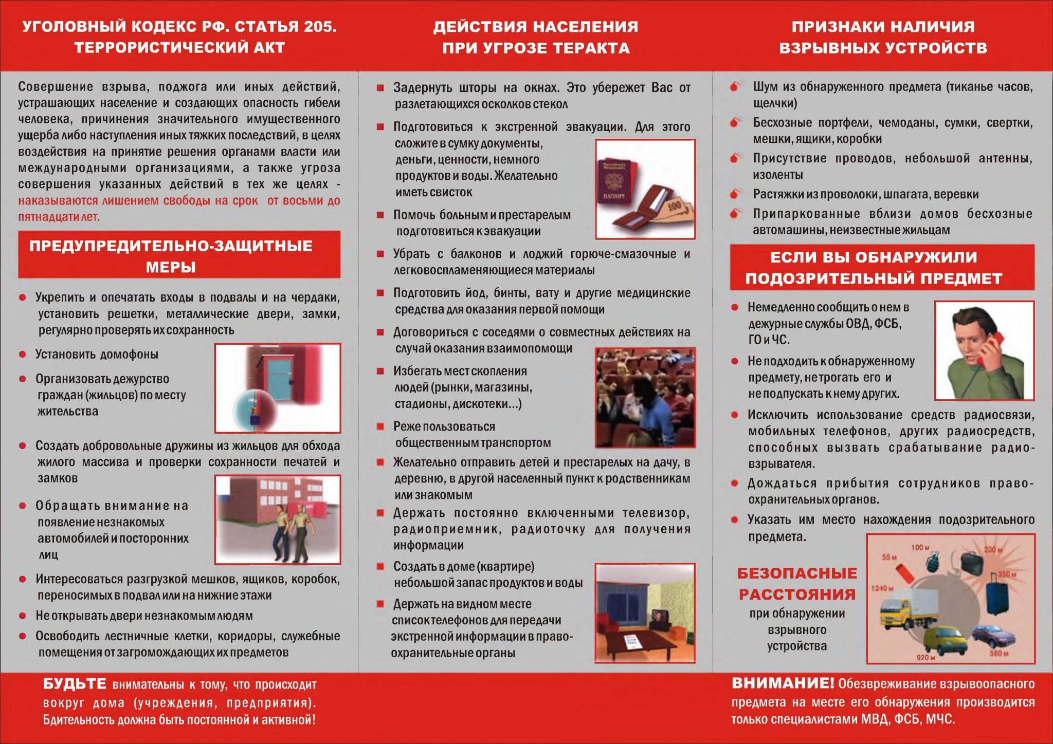 Памятка о порядке действий граждан при обнаружении признаков подготовки террористических актов