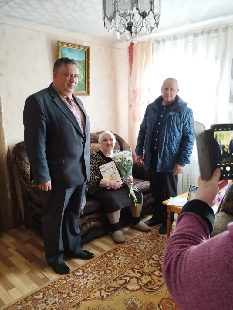 Передал Елене Аркадьевне поздравительное письмо от Президента Российской Федерации, вручили цветы и подарок. Такие встречи ещё раз напоминают, как важно сохранять внимание и уважение к людям старшего поколения — тем, чья жизнь неразрывно связана с историей нашей страны и родного района.