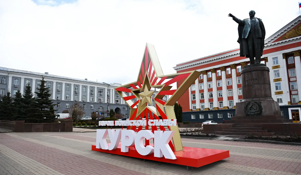На Красной и Театральной площадях появились тематические фотозоны, у парка Пионеров — световая инсталляция «Курск — город воинской Славы», а на центральных улицах — баннеры с Георгиевской лентой и патриотические растяжки.