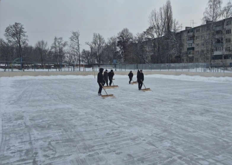 После обильного снегопада поверхность катков очистили от снега и повторно залили лёд. В школе № 46 работе по уборке снега активно подключились школьники, чтобы побыстрее начать играть в любимый хоккей.
